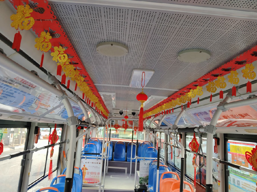 扮靚車廂迎新春,公交車?yán)锬晡稘?/h1>
