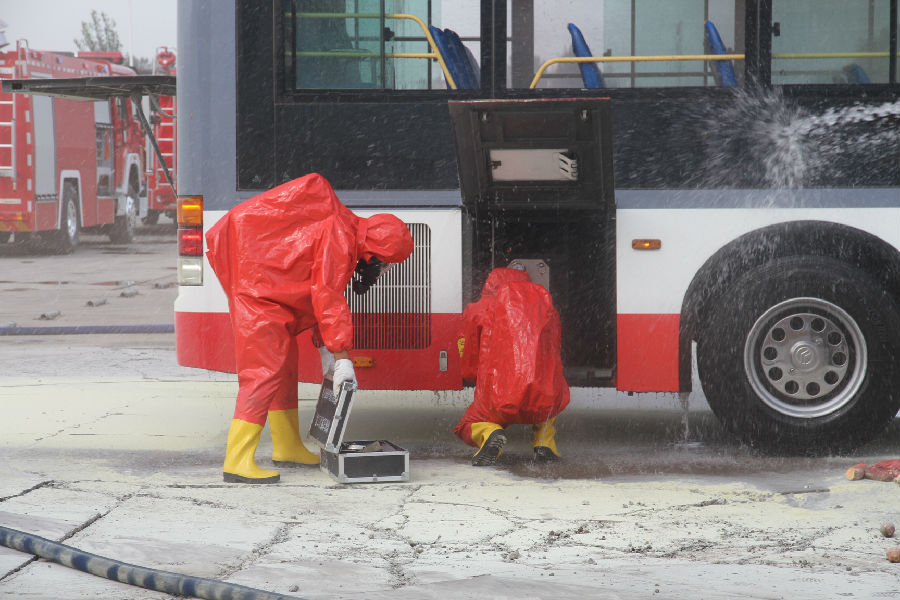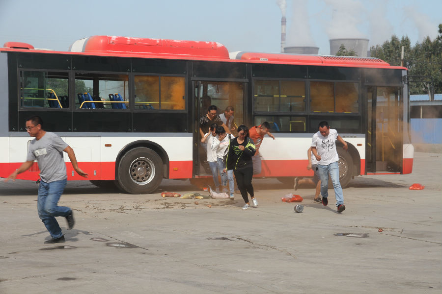 本次演練,旨在強(qiáng)化公交駕駛員安全防范意識和提高應(yīng)對突發(fā)事件的應(yīng)急處置能力,最大限度地減少火災(zāi)、恐怖暴力事件造成的危害,保護(hù)人民群眾生命財(cái)產(chǎn)安全。演練活動共設(shè)置了三個演練科目,即在公交車上發(fā)生劫持人質(zhì)事件、在公交車上發(fā)現(xiàn)疑似爆炸物及公交車在正常運(yùn)營中突然起火后的各種應(yīng)急處理措施。