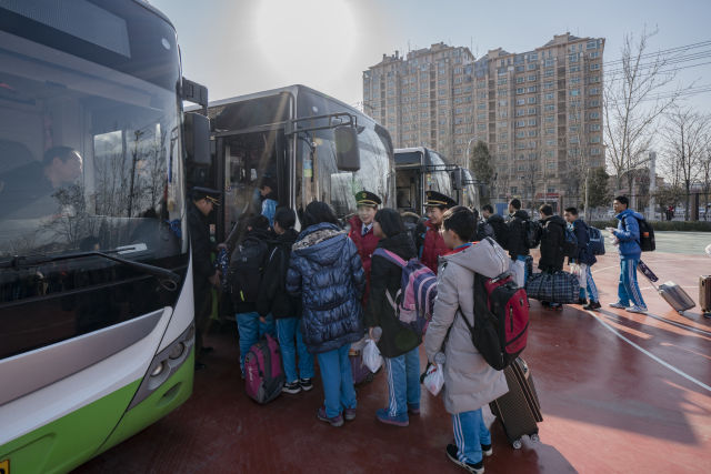 1月25日,衡水英才學校的260名孩子早早地收拾好行李,在學校操場上排好隊伍等待登車。衡水公交總公司副總經理張新茂介紹,今天這些孩子將通過“公鐵聯運”服務回到北京。公交公司負責學校到火車站的短途運輸,衡水車務段負責向中國鐵路總公司提報運力需求,打造團體旅客“公鐵聯運”一站式運輸。