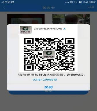 線上辦理敬老卡電子公交卡和年審業(yè)務(wù)只需交納15元乘車意外險即可。當(dāng)提交完卡片年審申請后系統(tǒng)會自動彈出保險辦理人員的二維碼,用戶掃描二維碼添加其為好友后,提供被保險人的姓名、身份證號碼和聯(lián)系方式,按照流程掃碼繳費后,會收到電子保單。