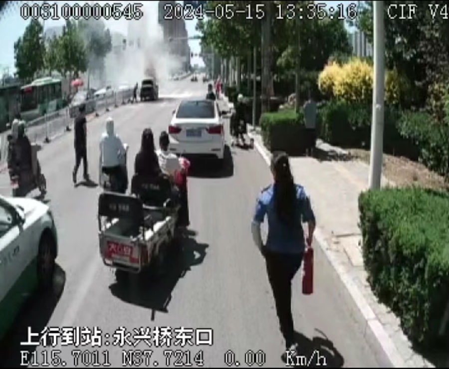 5月15日下午13時32分,31路車長李月瑩駕駛公交車行駛到永興橋東口時,突然看到路邊一輛小汽車冒出濃煙并有火苗竄出,危急時刻,李月瑩立即將公交車停到安全地帶,抄起隨車配備的滅火器,沖向起火地點。由于火勢較大,李月瑩將滅火器用完之后仍有明火不斷竄出,火情未得到有效控制。恰好此時,30路車長趙紅霞和31路車長史立英駕駛公交車行至此地,看到這一情況,他們果斷靠邊停車,拿起滅火器迅速與李月瑩一起參與滅火,三位公交車長不懼危險勇敢撲救,待消防員趕到,三人才放心離開,轉(zhuǎn)身回到公交車上繼續(xù)投入到營運工作中,他們用實際行動贏得了眾多市民和車內(nèi)乘客的紛紛贊揚。